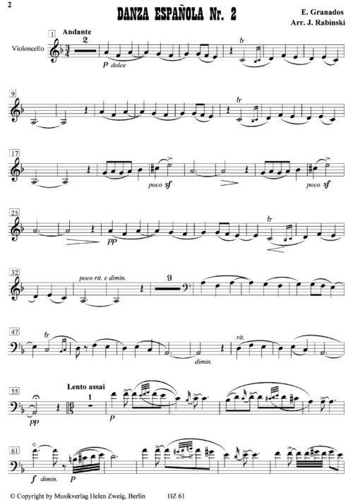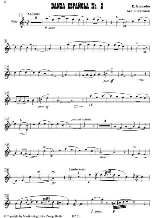 Enrique GranadosDanza Española Nr. 2Bearbeitet und herausgegebenvon Jacek RabinskiBearbeitet in drei Versionen:für Flöte (Violine oder Violoncellound Gitarre)Tonart: d-moll4 Seiten, Hochformat A4, geheftetAusgabe: StimmenAufführungsdauer: 5’Schwierigkeitsgrad: mittelschwerBestellnummer: HZ 61ISMN M-50053-095-4Preis: € 12,90